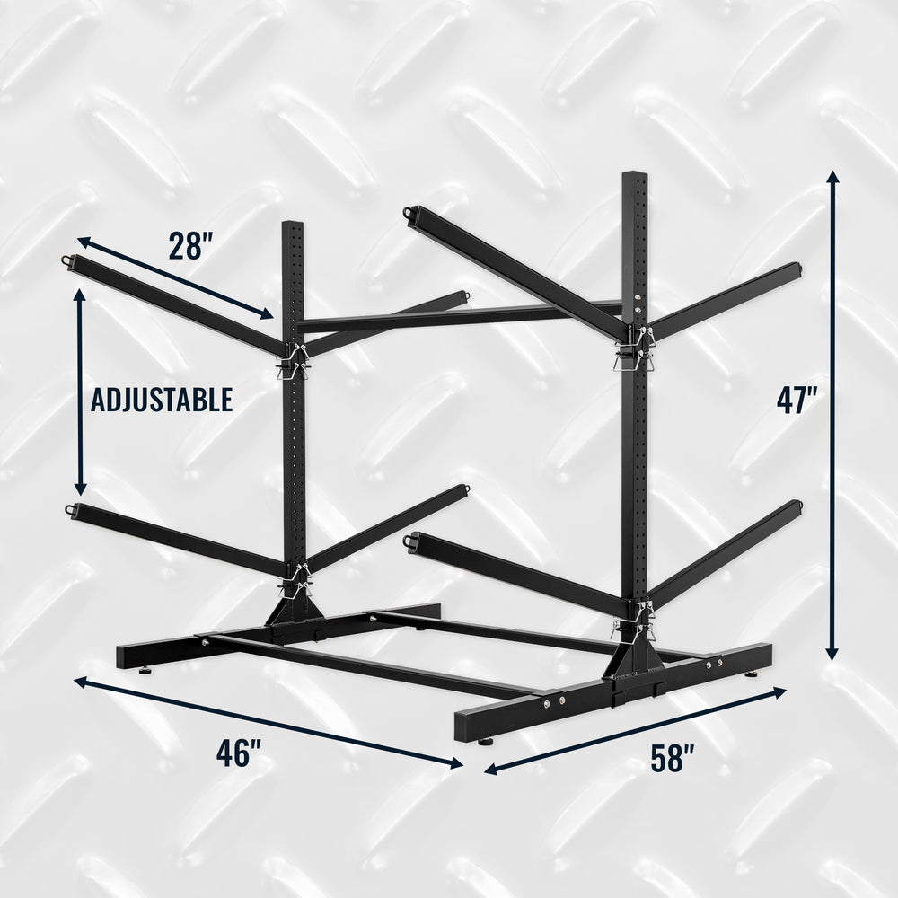 Exceptionally sturdy and easy to access, this 4-level, double-sided rack keeps kayaks closer to the ground for effortless loading. Built to last, it transforms any space with organized, clutter-free storage.